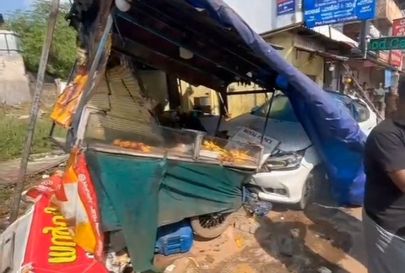 ചങ്ങനാശ്ശേരി മതുമൂലയിൽ കാറ് തട്ടുകടയിലേക്ക് ഇടിച്ചു കയറി അപകടം