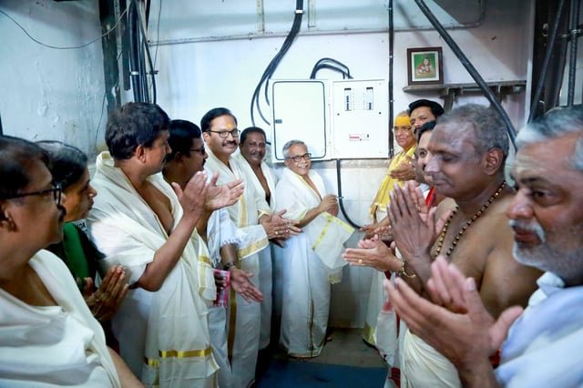 ഇന്നലെ ഉച്ചപൂജയ്ക്ക് ശേഷമായിരുന്നു സമർപ്പണം. കെപിഎം പ്രോസസിങ്ങ് മിൽ എംഡി ശേഖറാണ് വഴിപാടായി ഇത് സമർപ്പിച്ചത്. ഇനി ചുറ്റമ്പലം, കൗണ്ടിങ്ങ്ഹാൾ എന്നിവിടങ്ങളിലും ശീതീകരണ സംവിധാനമൊരുക്കും. സമർപ്പണ ചടങ്ങിൽ ദേവസ്വം ഭരണസമിതി അംഗങ്ങൾ അടക്കം പങ്കെടുത്തു.
