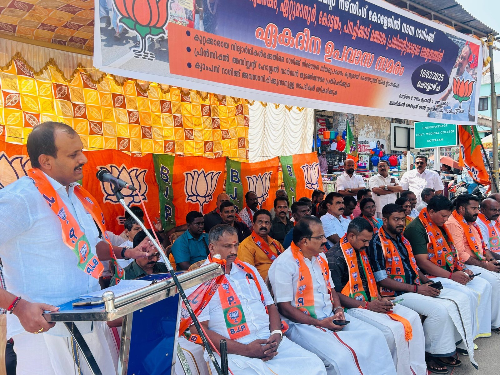 ബിജെപി കുമരകം, ഏറ്റുമാനൂർ, കോട്ടയം, പനച്ചിക്കാട് മണ്ഡലം പ്രസിഡന്റ്മാരുടെ നേതൃത്വത്തിലാണ് ഉപവാസം നടന്നത്. കോട്ടയം ഗവണ്മെന്റ് നഴ്സിംഗ് കോളേജിനു സമീപമാണ് ഉപവാസം വേദി.
