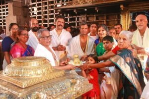 സമര്പ്പണശേഷം ദര്ശനം കഴിഞ്ഞുവന്ന കുലോത്തുംഗനും കുടുംബത്തിനും കളഭം, കദളിപ്പഴം, പഞ്ചസാര, ചാര്ത്തിയ തിരുമുടിമാല, പട്ട് എന്നിവ അടങ്ങിയ ഗുരുവായൂരപ്പന്റെ പ്രസാദകിറ്റ് നല്കി.