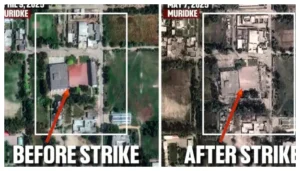 ബഹാവൽപൂരിനടുത്തുള്ള മർകസ് സുബ്ഹാൻ അല്ലാഹ് കോമ്പൗണ്ടും മുറിദ്കെയിലെ നങ്കൽ സദാനിലെ മർകസ് തൈബ കോംപ്ലക്സുമാണ് ചിത്രങ്ങളിലുള്ളത്. ജെയ്ഷെ മുഹമ്മദിന്റെയും ലഷ്കർ ഇ തൊയ്ബയുടെയും കേന്ദ്രങ്ങളുമായ രണ്ട് സ്ഥലങ്ങളും ഇപ്പോൾ തകർന്ന അവസ്ഥയിലാണ്. മെയ് 7 ലെ ചിത്രങ്ങളിൽ തകർന്ന മേൽക്കൂരകൾ, ഗർത്തങ്ങൾ, അവശിഷ്ടങ്ങൾ എന്നിവയുൾപ്പെടെ നാശത്തിന്റെ വ്യാപ്തി വ്യക്തമായി കാണാം.