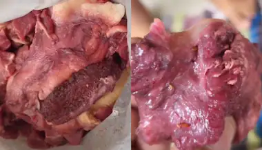 പരാതിയായതോടെ ഉടമ കട പൂട്ടി സ്ഥലംവിട്ടു. ആരോഗ്യകേന്ദ്രം, ഭക്ഷ്യ സുരക്ഷ ഉദ്യോഗസ്ഥര് സ്ഥലത്തെത്തിയപ്പോഴേക്കും കട അടച്ച നിലയിലായിരുന്നു. പരാതിക്കാരന്റെ വീട്ടിലെത്തിയ ഭക്ഷ്യ സുരക്ഷ ഉദ്യോഗസ്ഥര് ഇറച്ചിയുടെ സാമ്പിള് പരിശോധനയ്ക്കായി ശേഖരിച്ചു. ലൈസന്സില്ലാതെ പ്രവര്ത്തിക്കുന്ന മാംസ വില്പന ശാലയാണ് ഇതെന്ന് പഞ്ചായത്ത് അധികൃതര് പറയുന്നത്. ഈ കടയില് നിന്നും മുമ്പും സമാന പരാതികളുയര്ന്നിട്ടുണ്ടെന്നും അധികൃതർ വിശദമാക്കുന്നത്.