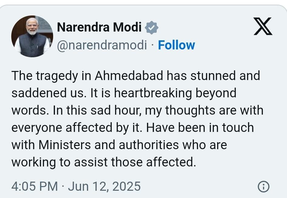 ന്യൂഡൽഹി : രാജ്യത്തെയാകെ ഞെട്ടിച്ച ദുരന്തത്തിൽ അതീവ ദുഃഖമുണ്ടെന്നും വാക്കുകൾക്ക് അതീതമായ അവസ്ഥയാണെന്നും പ്രധാനമന്ത്രി എക്സിൽ കുറിച്ചു.