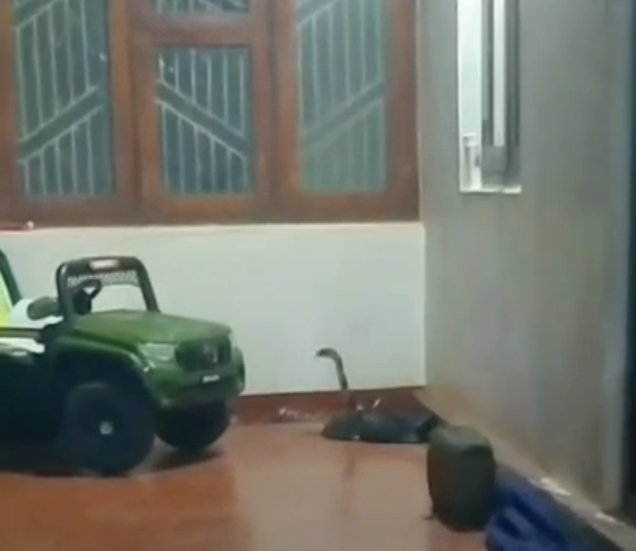 ടോയ് കാർ അനങ്ങുന്നത് കണ്ട് ടോർച്ച് അടിച്ച് നോക്കിയ വീട്ടുകാർ ഭീമാകാരനായ രാജവെമ്പാലയെ കണ്ടെത്തുകയായിരുന്നു.