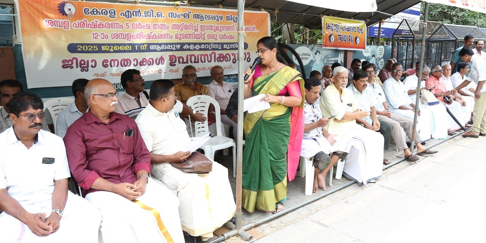 ശമ്പള പരിഷ്കരണം നടപ്പാക്കാത്തതിൽ പ്രതിഷേധിച്ച് എൻ.ജി.ഒ. സംഘ് ആലപ്പുഴ ജില്ലയുടെ ആഭിമുഖ്യത്തിൽ കളക്ട്രേറ്റിന് മുന്നിൽ നടന്ന ഉപവാസ സമരം ഉദ്ഘാടനം ചെയ്തു സംസാരിക്കുകയായിരുന്നു ആര്യ. 18%ക്ഷാമബത്ത കുടിശ്ശിക, പങ്കാളിത്ത പെൻഷൻ പിൻവലിക്കൽ, സർക്കാർ വിഹിതത്തോടെ മെഡിസെപ്പ് തുടങ്ങി എല്ലാ മേഖലയിലും ജീവനക്കാരെ ഇടതു സർക്കാർ വഞ്ചിക്കുന്നതായി ഉദ്ഘാടക കൂട്ടിച്ചേർത്തു.