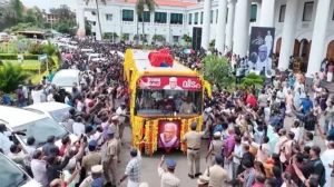 വിലാപയാത്രയ്ക്ക് കെഎസ്ആര്ടിസി ബസില് സാരഥികളാവുന്നത് തിരുവനന്തപുരം സെന്ട്രല് ഡിപ്പോയിലെ ടി പി പ്രദീപും, വികാസ് ഭവന് ഡിപ്പോയിലെ കെ ശിവകുമാറും ആണ്. പ്രധാന ബസിനെ അനുഗമിക്കുന്ന രണ്ടാമത്തെ ബസിന്റെ ഡ്രൈവര്മാര് സിറ്റി ഡിപ്പോയിലെ എച്ച് നവാസും, പേരൂര്ക്കട ഡിപ്പോയിലെ വി ശ്രീജേഷുമാണ്. സിപിഎം സംസ്ഥാന സെക്രട്ടറി എം വി ഗോവിന്ദന് അടക്കമുള്ള നേതാക്കളും വിലാപയാത്രയെ അനുഗമിക്കുന്നുണ്ട്.