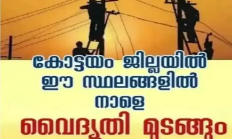 മണർകാട് ഇലക്ട്രിക്കൽ സെക്ഷൻ്റെ പരിധിയിൽ വരുന്ന പുളിമൂട്, പൂപ്പട , ചെറിയാൻ ആശ്രമം, ഗുഡ്ന്യൂസ്,മരിയൻ സെൻ്റർ, മറീന റബ്ബേഴ്സ്, വരാപ്പള്ളി ട്രാൻസ്ഫോമറുകളിൽ നാളെ 9 മുതൽ 5.30 വരെയും കണിയാംകുന്ന്, ജാപ് No:2, തടത്തിമാക്കൽ, സോന , കുഴിപ്പുരയിടം, പെരുമാനൂർ കുളം ട്രാൻസ്ഫോമറുകളിൽ ഭാഗികമായും വൈദ്യുതി മുടങ്ങും.
