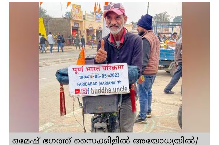 ബുദ്ധ അങ്കിള് എന്ന് സ്വയം വിശേഷിപ്പിക്കുന്ന ഒമേഷ് ഭഗത്തും ഇത്തരത്തില് സൈക്കിളില് യാത്ര ചെയ്താണ് അയോധ്യയിലെത്തിയത്. 2023 മെയ് 5നാണ് ഇയാള് ഹരിയാനയിലെ ഫരീദാബാദില് നിന്നും യാത്ര തിരിച്ചത്. 65 കാരനായ ബിലാസി റാമും 500 കിലോമീറ്റര് അകലെയുള്ള ബറേലിയില് നിന്ന് സൈക്കിളിലാണ് അയോധ്യയിലെത്തിയിരിക്കുന്നത്. ഇത് സ്വയം ചെയ്യുന്നതല്ലെന്നും ഭഗവാന് രാമന് എന്നോട് ആവശ്യപ്പെട്ടിട്ടാണിത് ചെയ്യുന്നതെന്നും ബിലാസി റാം പറഞ്ഞു.