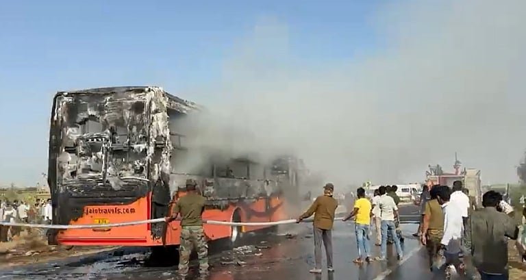 അതേസമയം, ഷോര്ട്ട് സര്ക്യൂട്ടാണ് അപകടകാരണമെന്നാണ് പ്രാഥമിക നിഗമനം. ദിവസങ്ങള്ക്ക് മുന്പ് മാത്രം നിരത്തിലിറക്കിയ ബസാണ് അഗ്നിക്കിരയായത് എന്നും റിപ്പോര്ട്ടുകളുണ്ട്. മരിച്ചവരില് പലരെയും തിരിച്ചറിയാന് പറ്റാത്ത വിധത്തില് പൊള്ളലേറ്റിട്ടുണ്ടെന്നും ഡിഎന്എ ടെസ്റ്റ് നടത്തി തിരിച്ചറിയല് നടത്തുമെന്നും ജില്ലാ കളക്ടര് പ്രതാപ് സിങ് വ്യക്തമാക്കി.