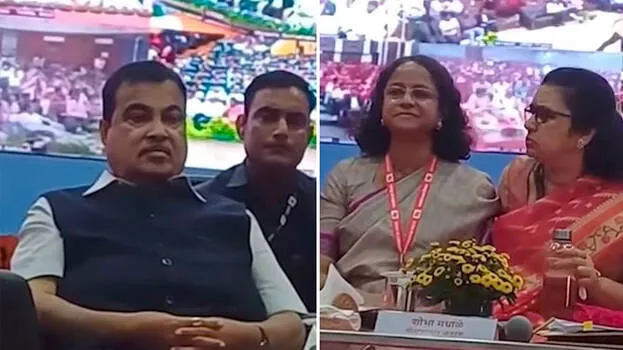 ഗഡ്കരി നോക്കിയിരിക്കെ അടുത്തടുത്ത ഇരിപ്പിടത്തിൽ ഇരിക്കുന്ന സുചിതയും ശോഭയും പരസ്പരം പിച്ചുന്നതും ഇതോടെ ഒരാളുടെ കയ്യിലെ വെള്ളം മറിഞ്ഞ് സീറ്റിൽ വീഴുന്നതും വീഡിയോയിൽ കാണാം. നിമിഷങ്ങൾക്കുള്ളിൽ കഴിഞ്ഞതോടെ കെെമുട്ട് കൊണ്ട് വീണ്ടും തട്ടുകയും എഴുന്നേറ്റ് മാറിയിരിക്കാൻ സുചിതയോട് ശോഭ ആവശ്യപ്പെടുകയും ചെയ്യുന്നുണ്ട്.