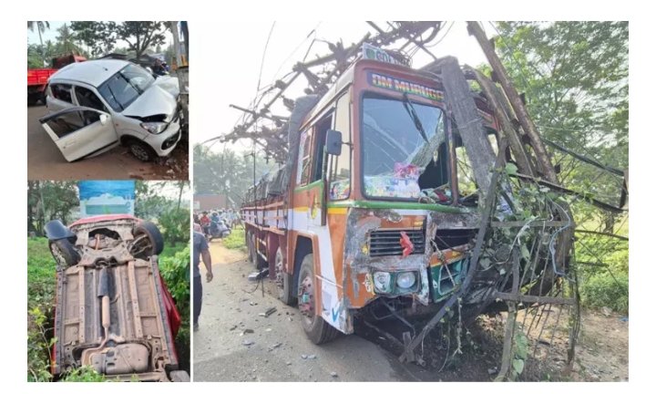 അപകടത്തിനിടയാക്കിയ ലോറി തൊട്ടടുത്ത ഇലക്ട്രിക്ക് പോസ്റ്റിലും ട്രാൻസ്ഫോമറിലും ഇടിച്ചാണ് നിന്നത്. പുത്തൂർ അരിച്ചൊള് ഭാഗത്താണ് അപകടം. അപകടത്തെ തുടർന്ന് പ്രദേശത്തെ വൈദ്യുതി മുടങ്ങി