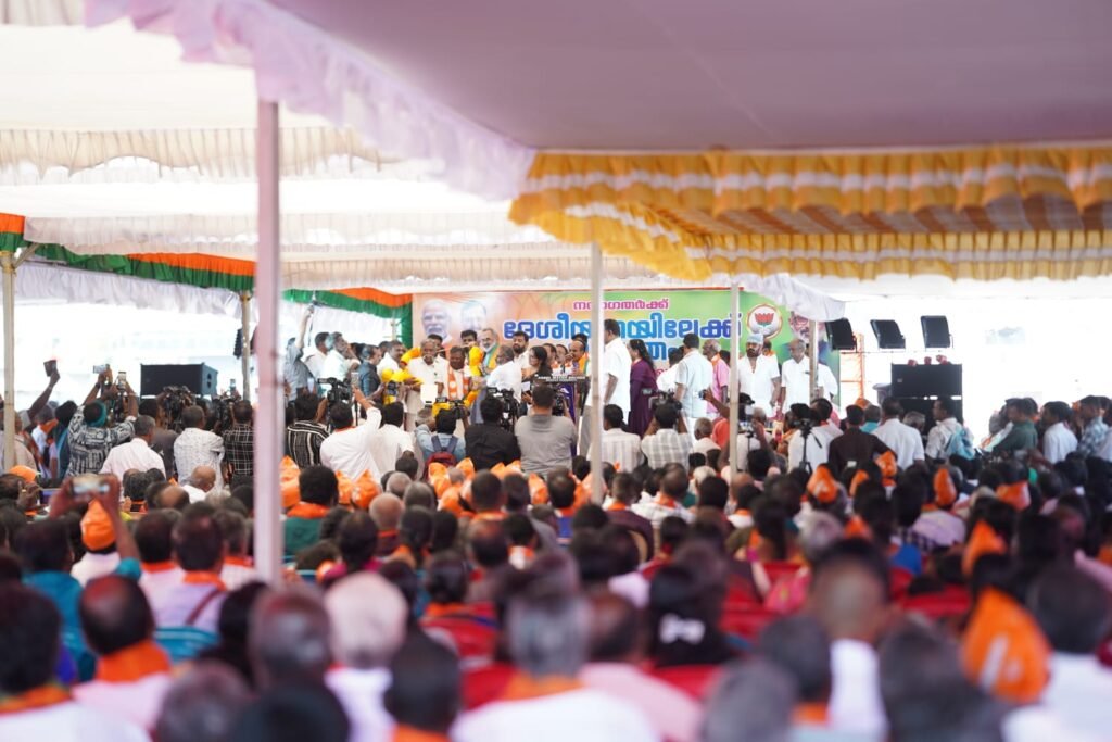 മൂന്നാറില് എല്ലാവര്ക്കും വീടുണ്ടാകണം. പൊട്ടിപ്പൊളിഞ്ഞ റോഡുകള് നന്നാവണം, ഇവിടെത്തെ കുട്ടികള്ക്ക് സ്കൂള് ഇതെല്ലാം കൊണ്ടുവരാന് ബിജെപി എന്ഡിഎയ്ക്ക് ഒപ്പം മൂന്നാറിലെ ജനങ്ങളുണ്ടാകണം. ഇത്രയേറെ വിനോദസഞ്ചാര സാധ്യയുള്ള മൂന്നാറില് അടിസ്ഥാന സൗകര്യങ്ങള് നിലവിലില്ല. അത് ഉണ്ടാകണമെന്നും അദ്ദേഹം പറഞ്ഞു.