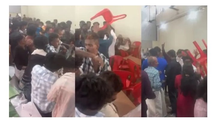 സദ്യ കഴിക്കുന്നതിനിടെ പപ്പടം കിട്ടാത്തതുമായി ബന്ധപ്പെട്ട് വരന്റെയും വധുവിന്റെയും വീട്ടുകാർ തമ്മിലുണ്ടായ ചെറിയ വാക്കുതർക്കം പിന്നീട് കൂട്ടത്തല്ലിൽ കലാശിക്കുകയായിരുന്നു.