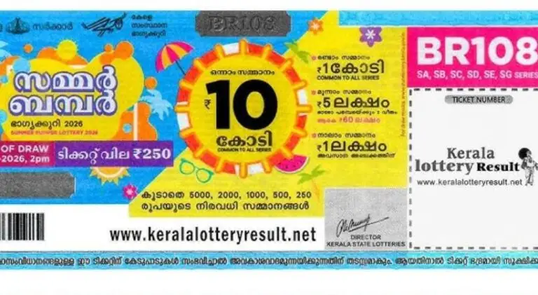 BR 108 നമ്പർ സമ്മർ ബമ്പർ ഭാഗ്യക്കുറി SA, SB, SC, SD, SE, SG, എന്നിങ്ങനെ ആറ് പരമ്പരകളിലായാണ് ടിക്കറ്റുകൾ അച്ചടിച്ചിട്ടുള്ളത്. 250 രൂപയാണ് ടിക്കറ്റ് വില. ഇത്തവണ സമ്മർ ബമ്പർ ടിക്കറ്റുകൾക്ക് റെക്കോഡ് വിൽപന. പാലക്കാട് ജില്ലയിലാണ് ഏറ്റവും കൂടുതൽ ടിക്കറ്റുകൾ വിറ്റഴിഞ്ഞത്.
