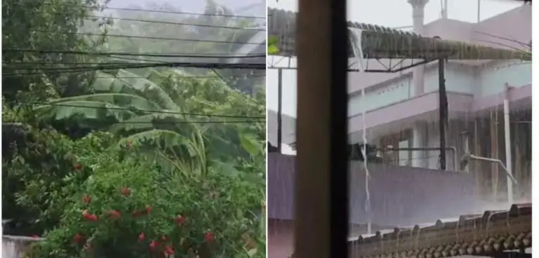 ആലുവ കരുമാലൂരിൽ ഒരു വീടിന്റെ മേൽക്കൂര പറന്നുപോയി. ദിനനാഥന്റെ വീടിന്റെ മേൽക്കൂരയാണ് ശക്തമായ കാറ്റിൽ പറന്നുപോയത്. ആർക്കും പരിക്കില്ല. ഒരു മണിക്കൂറിലധികം സമയം നഗരത്തിന്റെ വിവിധ ഭാഗങ്ങളിൽ മഴ തകർത്ത് പെയ്തു.