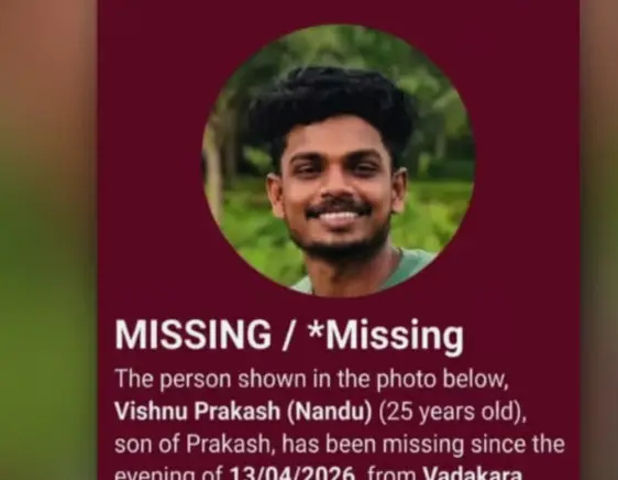 കോഴിക്കോട് : വടകരയിൽ 25 വയസുകാരനെ കാണാതായി. ആയഞ്ചേരി സ്വദേശി വിഷ്ണു പ്രകാശിനെ (25) ആണ് കാണാതായത്. ബാങ്കിലേക്ക് പോകുന്നുവെന്ന്…